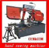 cutting machine,bandsaw,band saw,metal cutting machines,metal cutting band baw,band sawing machines,saws, cutting machine GB4035 specification: 1. Model:GB4035 metal cutting bandsaw2. Cutting capacity round (mm) 350 Cutting capacity rectangle (mm) 350x400 3.oil_pump Motor power (KW)0.75 main motor output:3.0 voltage:380V Frequency:50Hz 4.Band saw dimensions (mm) 1.1x34x4115 Process Speed (m/min) 20/40/60 6.Overalsize (mm) :2145x1155x1425 Machine weight (kg) 880 Main features: 1.Hydraulic control of feeding speed of ccutting,stepless adjustable. 2.Hydraulic control of bilateral claping of pincers,automatic aliging with the workpiece center for cutting. 3.Possible for sawing small material in bundle with high production efficiency. 4.The saw blade uses antifriction bearing and hard alloy for guiding,thus prolonging service life of the saw blade.